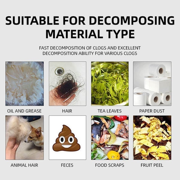 Die Anwendung ist ganz einfach: Einfach das Pulver einfüllen. Es desodoriert mit einem frischen Duft und tötet 99 % der Bakterien ab. Dieser leistungsstarke Abfluss- und Rohrreiniger eignet sich nicht nur für Toiletten, sondern auch für die Reinigung von Küchenrohren, Spülbecken und Balkonabläufen.