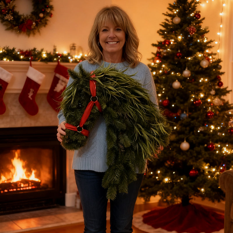 Jeder Kranz wird aus hochwertigen Materialien wie künstlichem Kiefernzweig, künstlichem Zedernholz, Naturkordel und Samtbändern gefertigt , um langanhaltende Schönheit zu gewährleisten. Die realistischen Texturen und die verschiedenen Grünschichten sind sorgfältig arrangiert und verleihen Ihrem Zuhause eine gemütliche und festliche Atmosphäre.